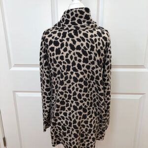 A chic leopard print pullover in super soft cashmere features a tunic length silhouette for a trendy look.