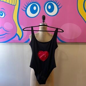 MMoschino Mare Black One Piece Red Inflatable Heart Swimsuit