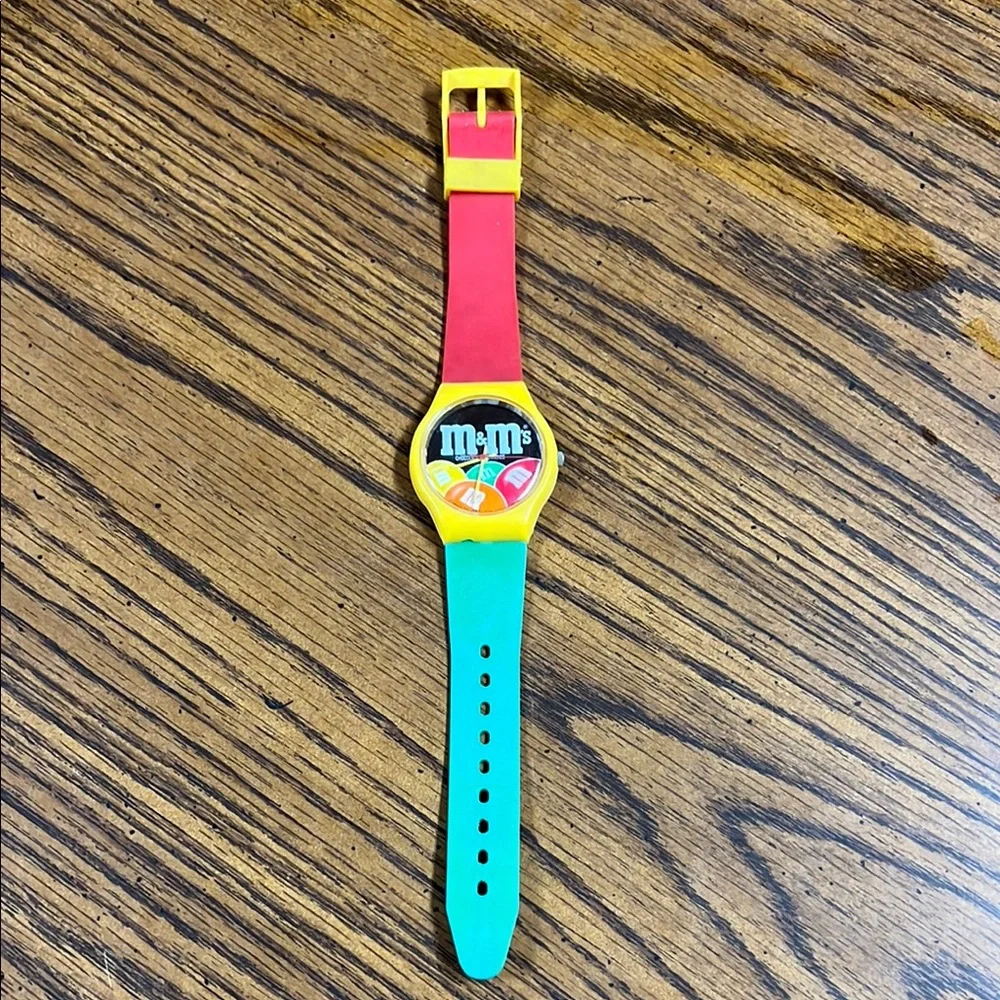Fun M&M'S watch for Bright red, yellow, and teal design. Dated 1987. Will need batteries