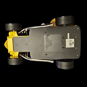 Features: Chrome accents, flame decals, rolling wheels
