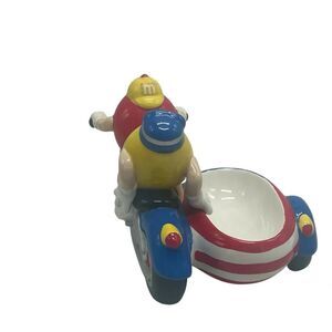 M&M's Motorcycle w/ Sidecar Ceramic Candy Dish By Galerie 2002 Red & Yellow. Measurements photographed. See pictures, please. Ships quickly (fragile 1004)