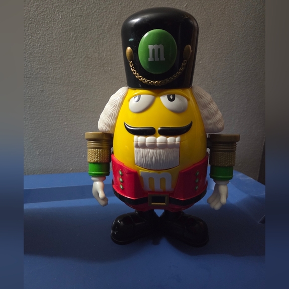 Delight your child with the M&M's Nutcracker dispenser. Featuring vibrant yellow, red, and green colors, this toy is perfectfor collectors. A must-have for M&M's fans. Is not brand new has been wiped down and has some minor scratches and dents but fully functional.