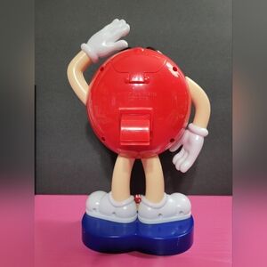 Fun and colorful M&M's red character candy dispener. Approximately 10" tall. Dispenser mechanism works. Excellent condition. Just has minor rub place on red M at bottom. Please see the last picture.