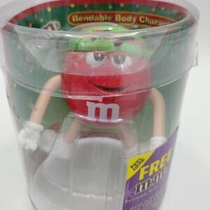 Brand new Red M&M Bendable Toy Character. This figure is Christmas themed with a green hat.