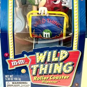 It's time to "yell & scream" with this Collectible WILD THING ROLLER COASTER M&M Candy Dispenser, that showcases a Carnival-Style roller coaster with our old friends, the Red and Green M&M characters.! Green's having fun but Red is not thrilled!