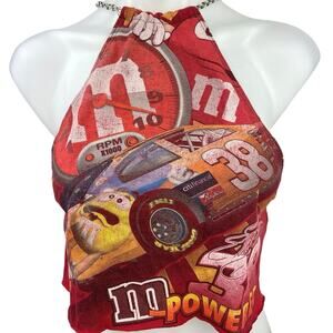 M&M’s x Furst of a Kind Red Halter Crossback Metal Chain Cami Crop Tank Top Sz S