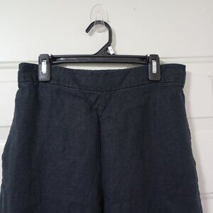 MNG 100% Linen Wide-Leg Pants M Womens Elastic Waist Relaxed Fit Black