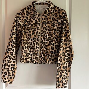 Chic animal print set. Includes a stylish lightweight jacket and matching Bermuda pants. Ideal for a trendy look.