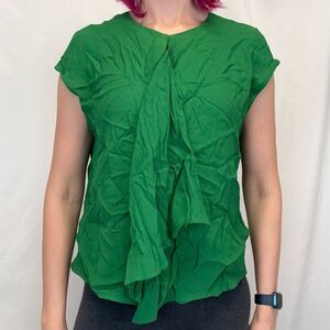 MNG Basics Women's Sleeveless Crinkle Ruffle Detail Tank Blouse Emerald Green 8