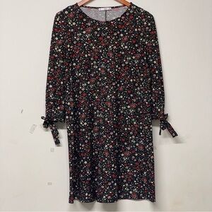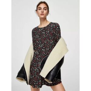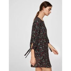 MNG Black Floral Print 3/4 Sleeve Mini Shift Dress