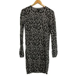 MNG Black Leopard Print Long Sleeve Bodycon Sweater Dress