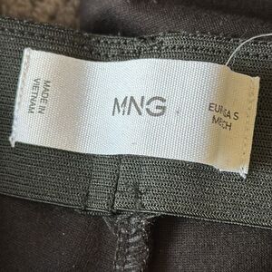 MNG Black Straight Leg Trousers Small High Waist Slit Hem Work Pants