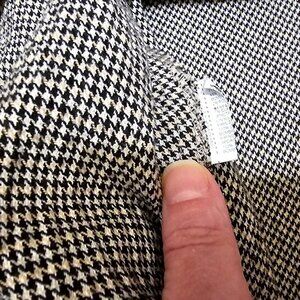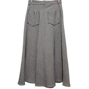 This houndstooth midi skirt offers a sophisticated look with its timeless A-line silhouette. Designed with functional pockets and a secure button and zipper closure, it combines style and practicality.