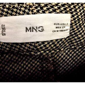 MNG Black & White Houndstooth A-Line Midi Skirt With Front & Back Pockets Button