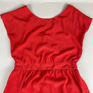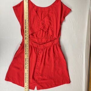 MNG By Mango Cut Out Back Dress Two Pockets Button Back Women's Large Red.