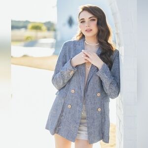 MNG Casual Double Breasted Linen Blazer Blue S preppy summer business casual