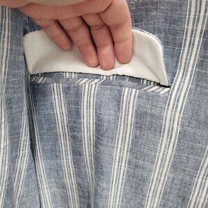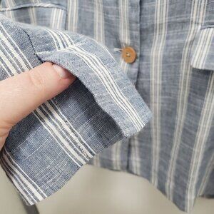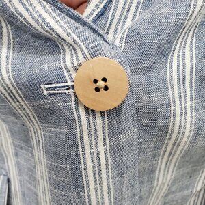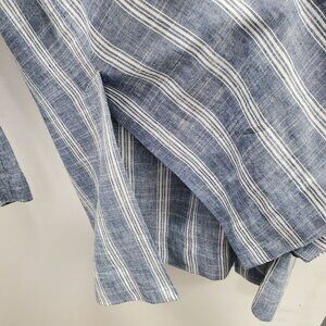 MNG Casual Women's Blue White Striped Linen Blend Lightweight Long Blazer US S