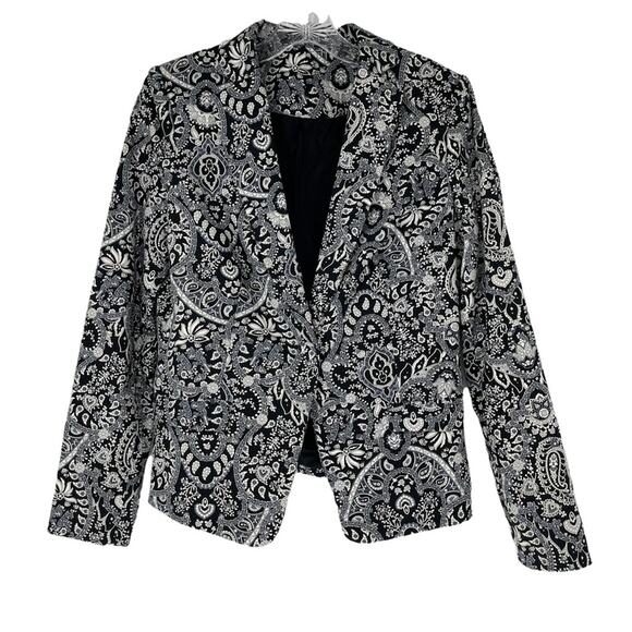 MNG Collection Paisley Navy White Print Blazer Size 10 Gardencore Fairycore