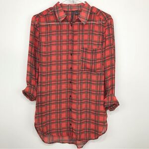 MNG Collection Red Plaid Semi Sheer Lightweight Button Up Long Sleeve Shirt