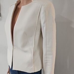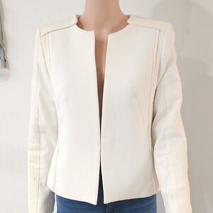 Chic Mango blazer in a soft cream shade. Open front design with structured shoulders. Perfect for a polished look. In Excellent Condition
