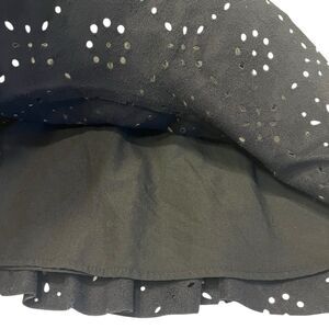 Edgy meets sweet in this MNG faux leather mini skirt with a flouncy ruffle hem and cutout detail—serving mini coquette vibes just in time for fall 2025.