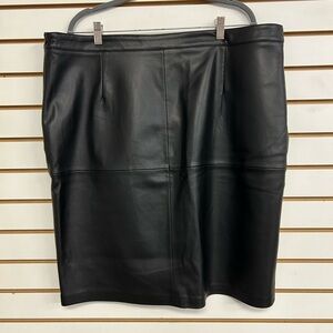 MNG Faux Leather Skirt Side Slit & Zipper Lined Black EUC Size 20 Plus Size
