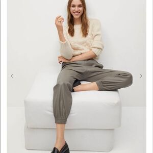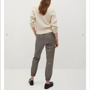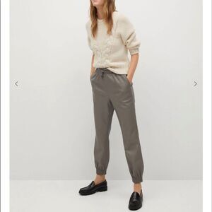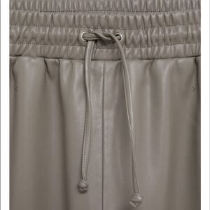 Faux leather, Jogger fit, Medium waist, Elastic waist with drawstring, Side pockets, Two welt pockets on the back, Elastic finish