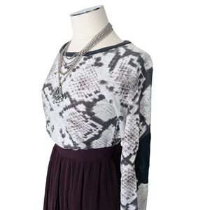 MNG JEANS Mango Snakeskin Sweatshirt Crewneck Elbow Faux Leather Patch Sz XS