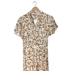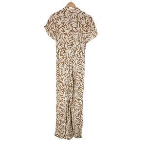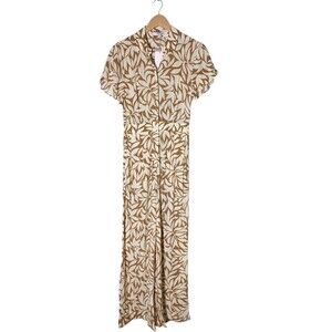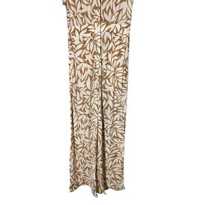MNG Jumpsuit Women's Size XS Brown Off White Leaves Leaf