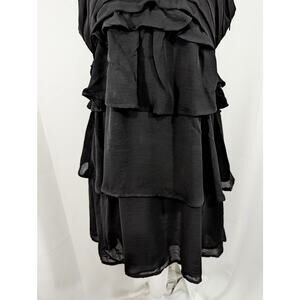 This dress is just absolutely gorgeous! In black poly, it has the look and feel of silk, from MNG! Featuring a ruffled bodice and ruffle straps, over a skirt of mini layers! Fully lined, side zipper, Size Medium! Stunning! Excellent! Superb EUC Condition! **ABSOLUTELY GUARANTEED CONDITION: EUC MINTY-EXCELLENT TO LIKE-NEW, by Lily @HauteClub!*** *Measurements always available on request!*