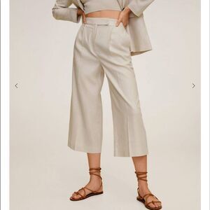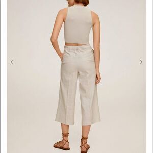 Linen mix, Culotte fit, High waist, Two side pockets, Elastic back waistband, Zip and hook fastening, The garments labelled as Committed are products that have been produced using sustainable fibers or processes, reducing their environmental impact. Mango's goal is to support the implementation of practices more committed to the environment, and therefore increase the number of sustainable garments in the collection.