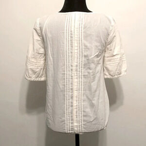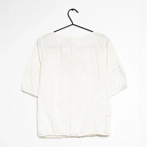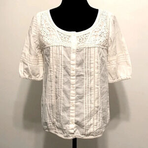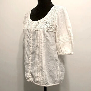 MNG MANGO Cream Linen Embroidered Button Front Top