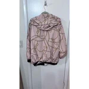 MNG MANGO WOMEN'S CHAIN PRINT STREET WEAR PREPPY HOODY JACKET LIGHT PINK SZ XL