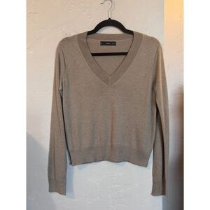 MNG Mango Beige Tan V-Neck Cashmere Sweater XS Camel