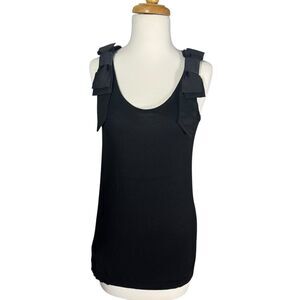 MNG Mango Black Bow Strap Scoop Neck Cami Camisole Tank Top Sz M/L
