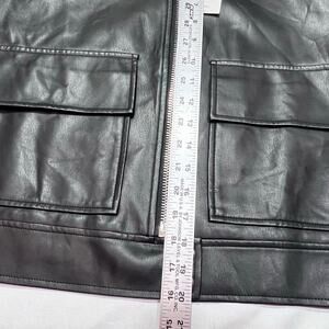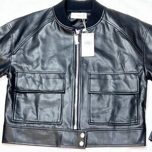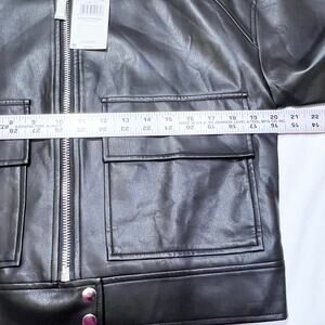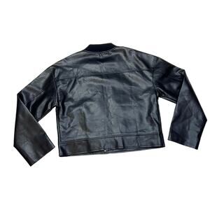 MNG Mango Black Faux Leather Jacket Women Small Black Short Patch Pockets New