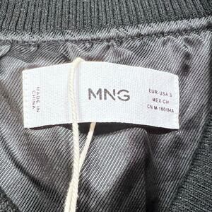 Introducing an MNG Mango Black Faux Leather Jacket for women in size small. This short-length jacket features patch pockets and a sleek black finish. This item is new and in excellent condition.