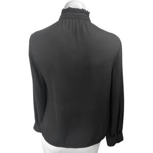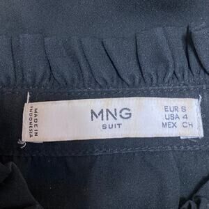 MNG Mango Black Long Sleeve Keyhole Ruffle Button Down Blouse Shirt Top Size 4
