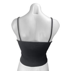 MNG Mango Black Sleeveless Ribbed Knit Bow Keyhole Cami Tank Crop Top Size S