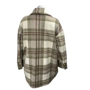 MNG Mango Brown Tan Plaid Checkered Long Sleeve Button Down Shirt Jacket Size XS-S