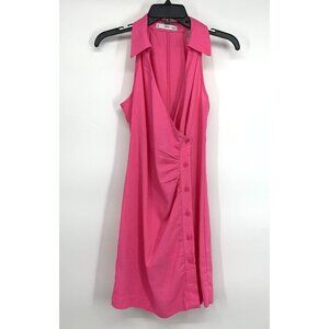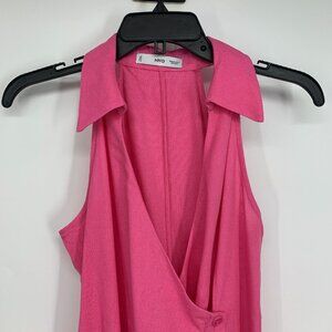 MNG Mango Dress Women 2 Pink Wrap Button Front Mini Linen Blend Sleeveless V Neck. Great pre-owned condition.