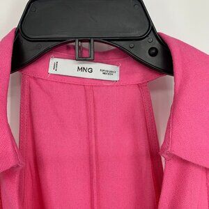 MNG Mango Dress Pink Wrap Button Front Mini Linen Sleeveless V Neck