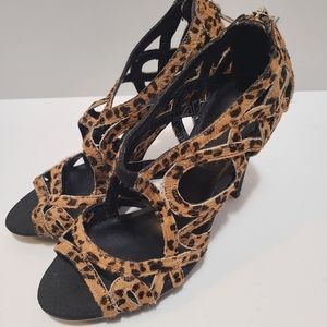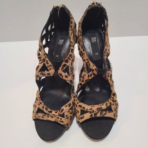 MNG Mango Faux Fur Leopard Print Heels Size 7.5