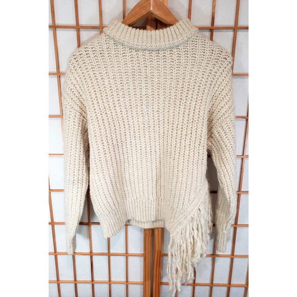 MNG Mango Fringe Side Sweater Pullover Oversized Chunky Crew Neck Cream Small