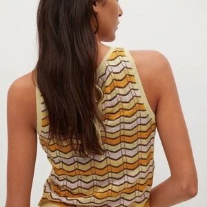 MNG Mango Geometric Chevron Patterned Yellow and Brown Pink Glitter Top Size XS