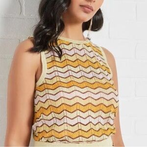 Chic tank top with a chevron design. Features yellow and brown hues. Ideal for casual wear.