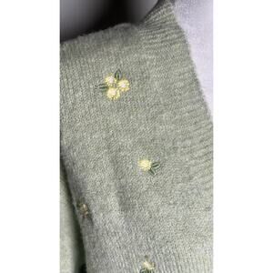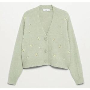 MNG Mango Green Knit Blend Medium V-Neck Button-Up Floral Embroidery Cardigan