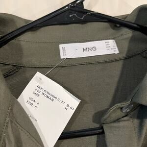 MNG Mango Green Long Sleeve Ruffled Tiered Collared Shirt Dress Size 4 Small
