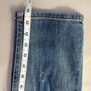 Mango cropped ‘Nancy’ jeans with white “paint splatter” distressing, relaxed fit, great condition.