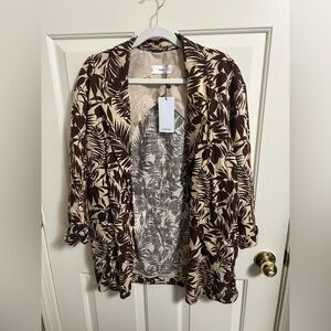 MNG Mango Linen Blend Tropical Print Notch Collar Oversized Blazer XXS NWT